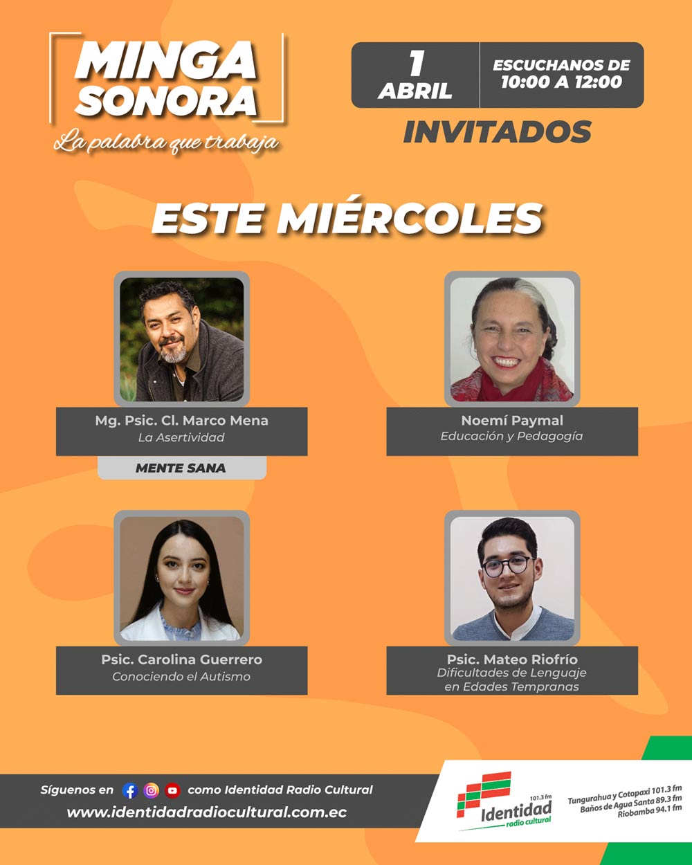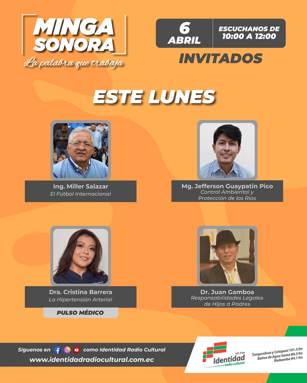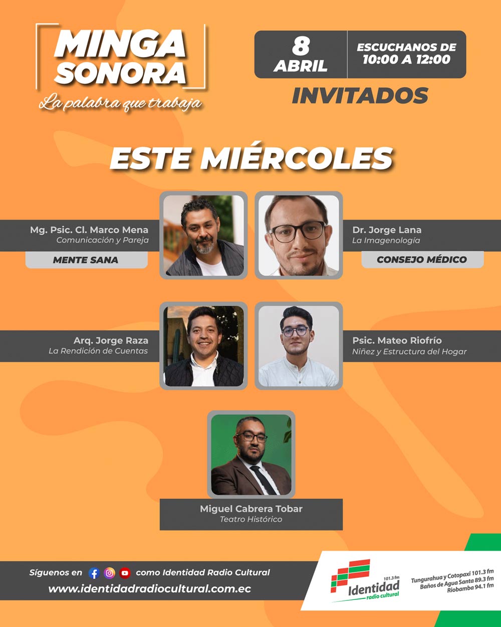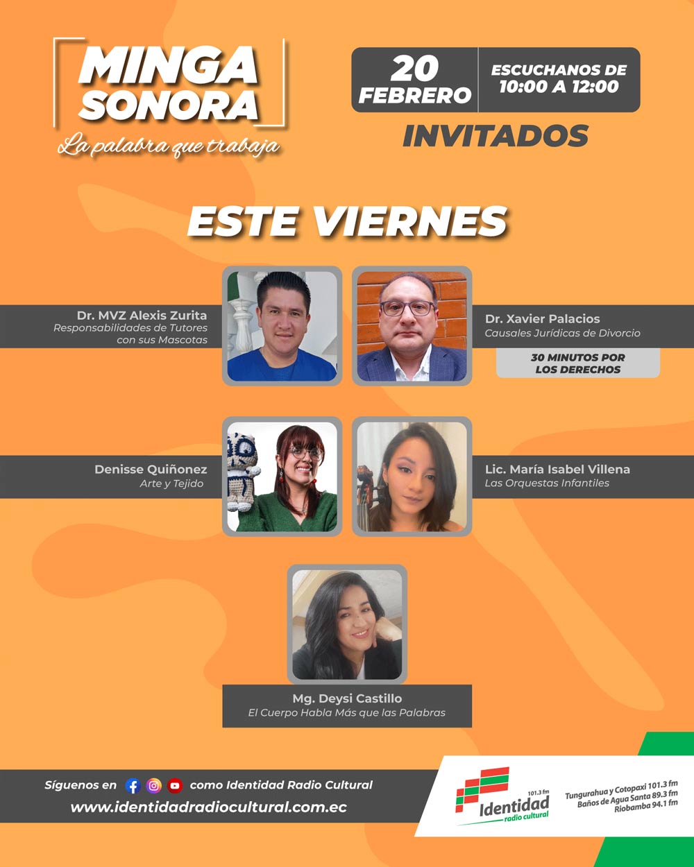 Programación: programacion@ identidadradiocultural.com.ec