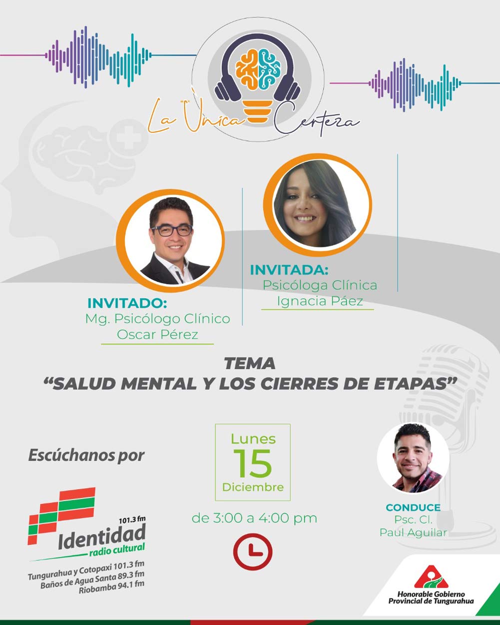 Escúchanos en vivo los lunes a las 15H00 a través de la mente sana del dial: Identidad Radio Cultural